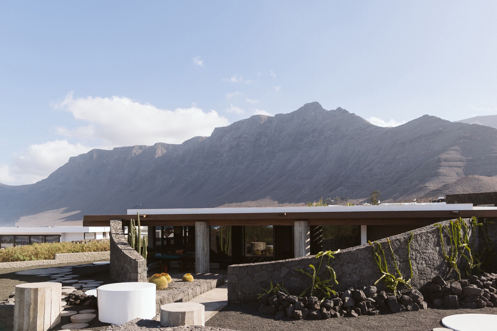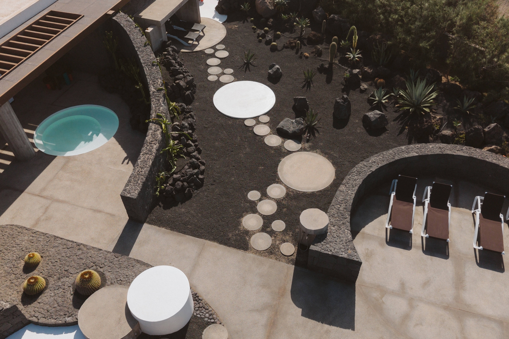 El exterior se define por los materiales emblemáticos de la isla: piedra volcánica, superficies encaladas en blanco, y carpinterías en madera. Estos materiales se trasladan también a los interiores, donde se combinan con una selección de acabados sensoriales y coloridos que envuelven cada estancia en una atmósfera única.