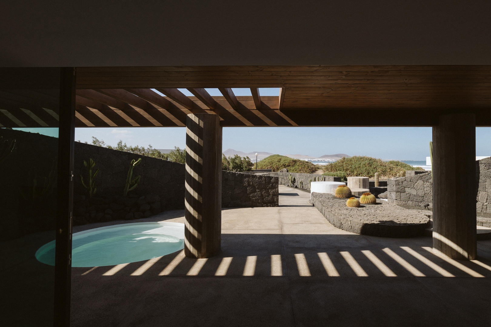 En el diseño arquitectónico de la casa se reinterpretan, de forma contemporánea y sutilmente lúdica, los principios tradicionales de Lanzarote. A su vez, se mantiene y evoluciona la esencia original de la urbanización de los años 70 en la playa de Famara, con sus característicos bungalows redondos, integrando estos elementos en el rediseño de las viviendas y de sus áreas ajardinadas.