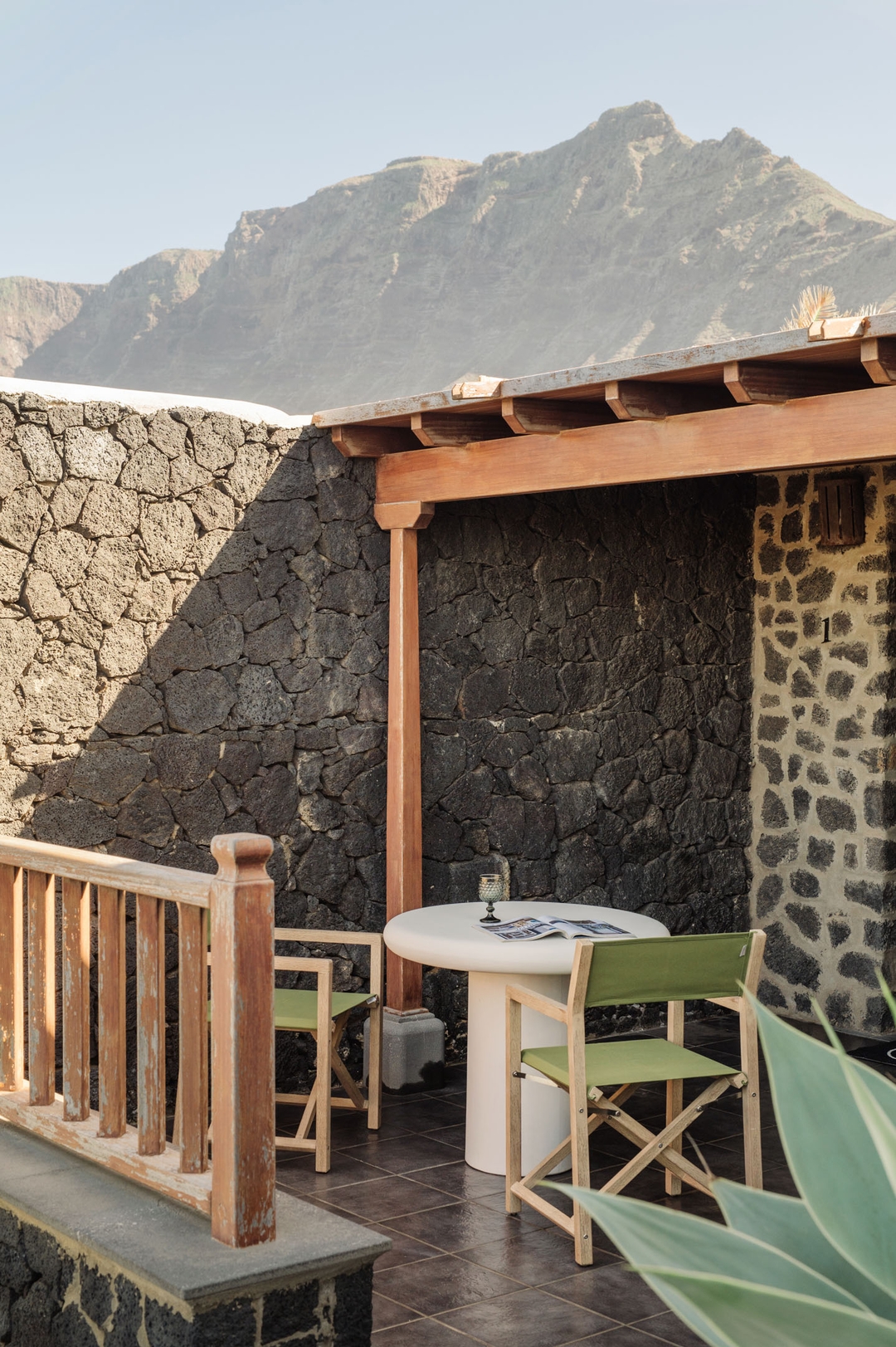 Cada detalle ha sido cuidadosamente pensado para disfrutar del entorno: una piscina climatizada, una agradable zona de tumbonas para relajarse al sol y terrazas privadas con vistas únicas a Famara, perfectas para compartir comidas y cenas mientras el paisaje marca el ritmo del día.