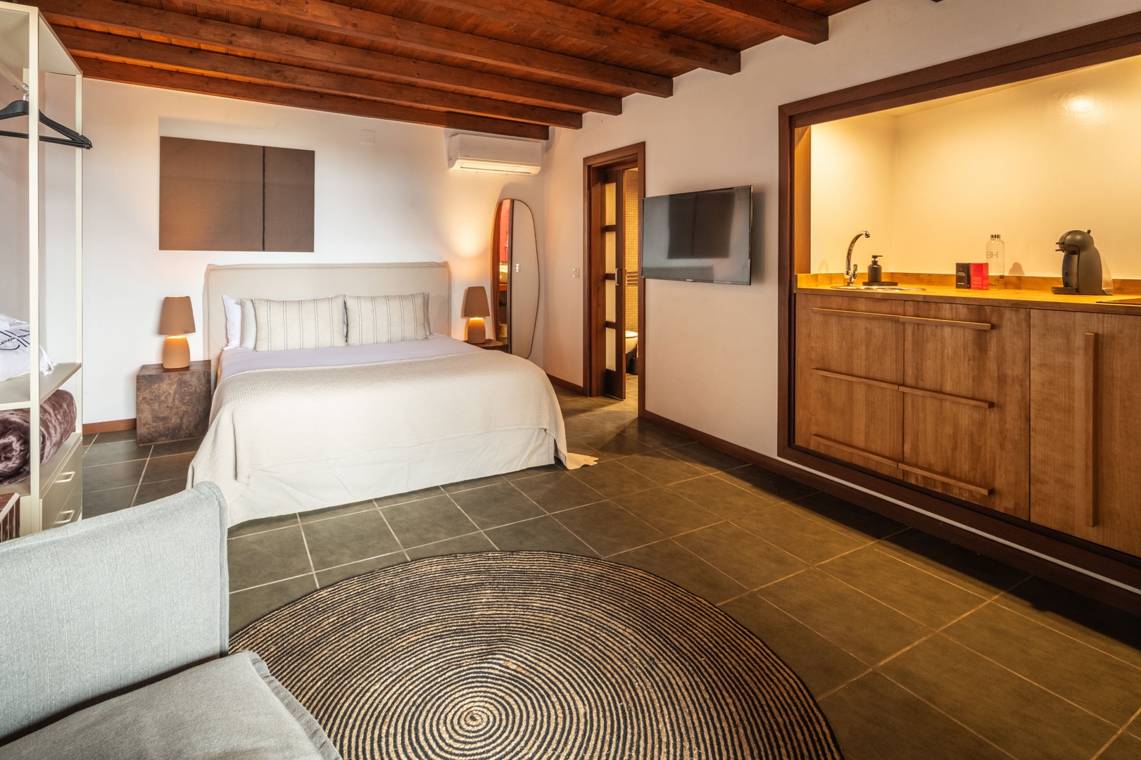 Este apartamento tipo estudio ha sido diseñado para ofrecer una estancia cómoda y funcional, con una distribución abierta que integra la zona de descanso con una agradable área de estar, creando un espacio acogedor y bien aprovechado.