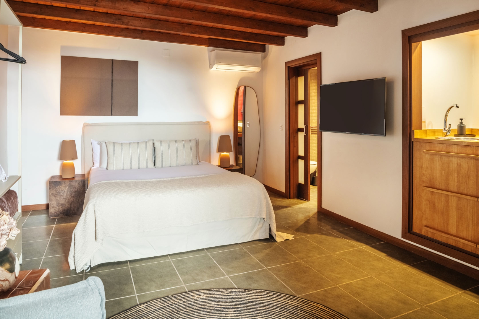 Apartamento tipo estudio de diseño moderno y funcional, pensado para disfrutar de la estancia con comodidad y estilo. Su distribución abierta integra la zona de descanso y estar, e incluye cocina independiente totalmente equipada, baño completo y terraza privada.